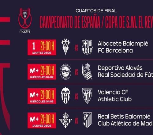 北京时间1月19日,西班牙足协公布了国王杯1/4决赛的对阵形势,此前在1/8决赛中主场3-2淘汰皇家马德里的西乙球队阿尔瓦塞特这一次又抽中了巴塞罗那。